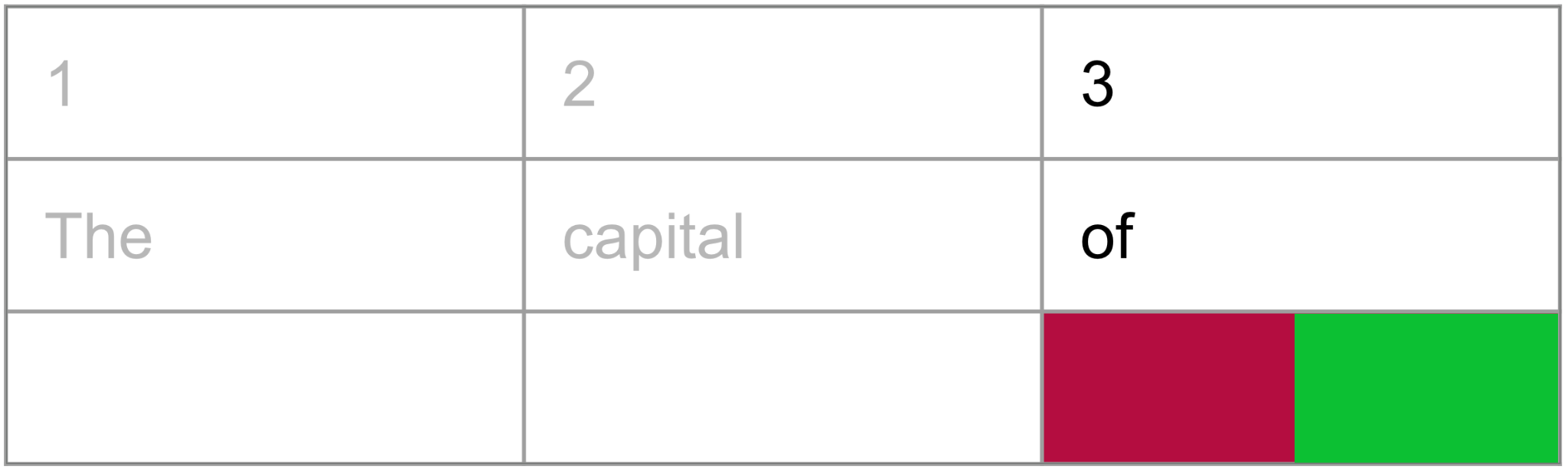 During training, we feed in huge amounts of text and calculate loss based on how well the first position predicts token 3, the second position predicts token 11, and so on. The one thing we must absolutely, positively not do when the model is calculating the next token for a certain position is let it use information from tokens after that position.