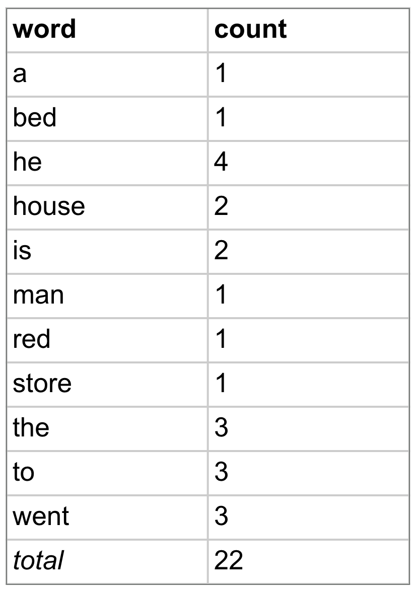 We’ll be talking a lot about vocabulary. In the example above, the vocabulary is all the words in our (very limited) language: a, bed, he, house, is, man, red, store, the, to, went. In the Chinese example, the vocabulary might be every known Chinese character. Soon we’ll get into how models like ChatGPT use tokens and then we’ll use vocabulary to mean all the possible tokens.