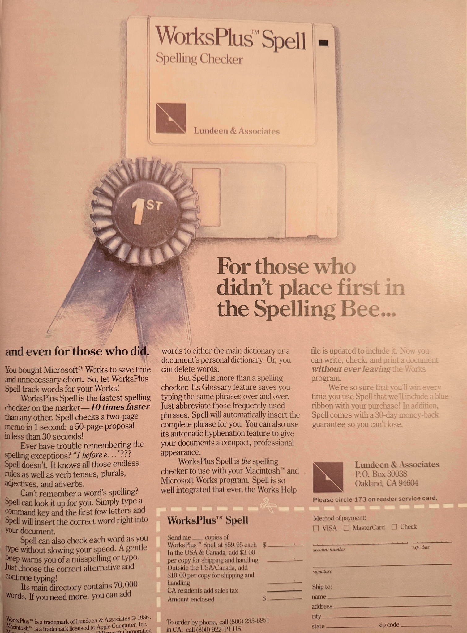 This all sounds pretty easy, although I doubt it was so easy back then. First you would have needed to jump through logistical, legal, and hard work hoops to assemble the big word list. Second, you can’t just split text into words by finding the spaces, you also have to deal with punctuation. Third, space to store information (e.g. the list of words) and processing power to do stuff would have been tight, so you would have had to be clever about how to store and access the words. Even back then users wouldn’t have wanted to wait all night to check spelling on a document.