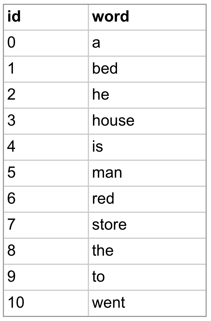 So what is a token? For the moment, think of it as a word. Take the example in chapter 2 of a language with very few words and assign each word an id:
